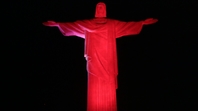 Cristo Redentor recebeu iluminação especial na cor vermelha pelo Dia